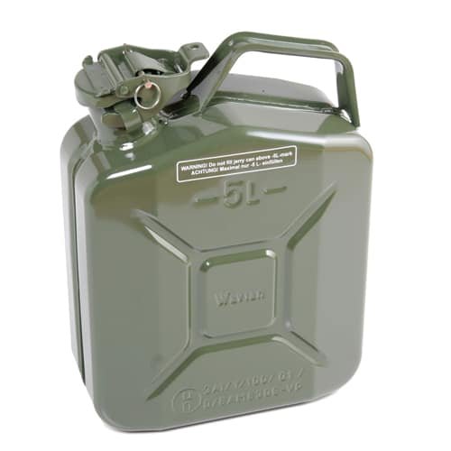 The limit is a maximum of two suitable metal containers each of a maximum capacity of ten litres and two plastic containers (which have to be of an approved design) each of a maximum capacity of five litres.