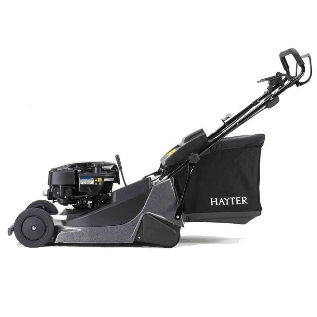 The latest model of Hayter Harrier 56 Petrol 3 speed lawnmower is equipped with the broadest rear roller among its competitors, allowing for an impressive 53cm stripe pattern and a 56cm cutting width. This enables operators to accomplish the traditional British striped look while also enhancing efficiency by trimming larger gardens in less time. It is an excellent option for individuals working in the landscaping industry.
