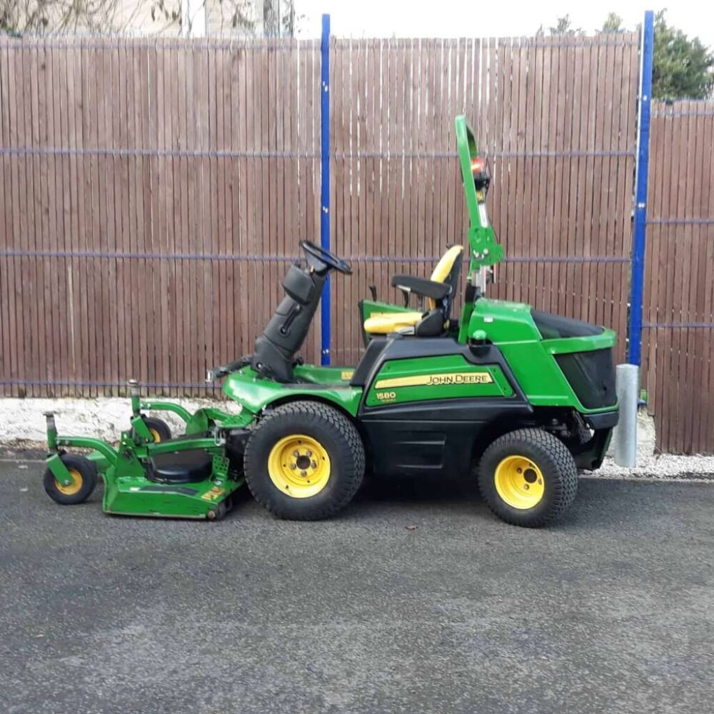 John Deere 1580 Outfront ride-on with 62″ rear discharge deck – serviced and new blades