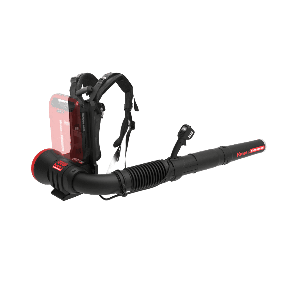 The only cordless commercial blower solution for professional use on the market. Extreme power and a very low sound level deliver the performance of gas without the noise. Thanks to the Kress silent technology, there is no issue disturbing customers & bystanders, or even having a conversation with a coworker. With a revolutionary battery and charging system, there are no concerns about being short on power for those landscapes that require extensive clean-up. An ergonomic backpack design that is adjustable and air permeable improves users’ comfort and lessens fatigue. With an IPX4 waterproof design, superior power levels, and an elevated comfort level, the Kress commercial blower will address your landscaping needs no matter what the weather.