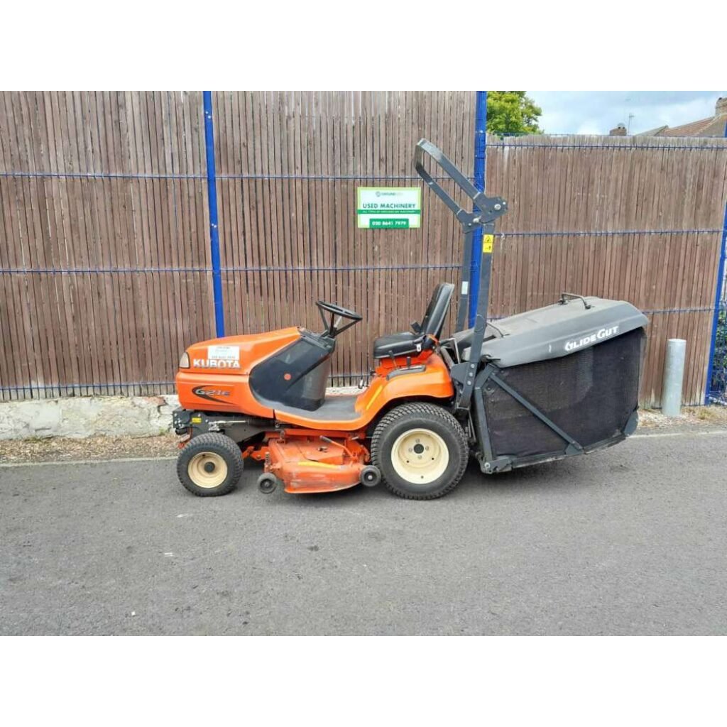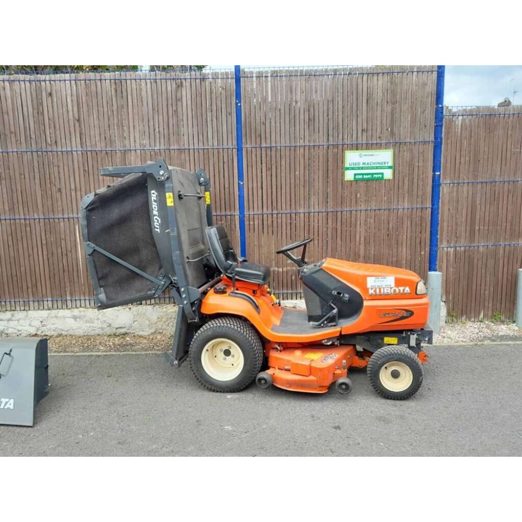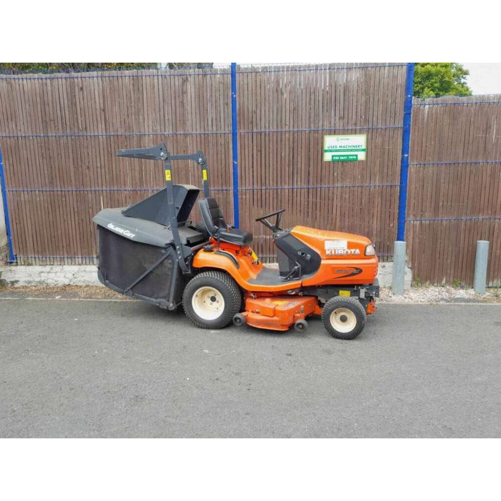 Kubota G21 cut and collect ride on in very good condition, low hours for age. Comes with rear chute to cut and drop if needed. Hydraulic collector dump.