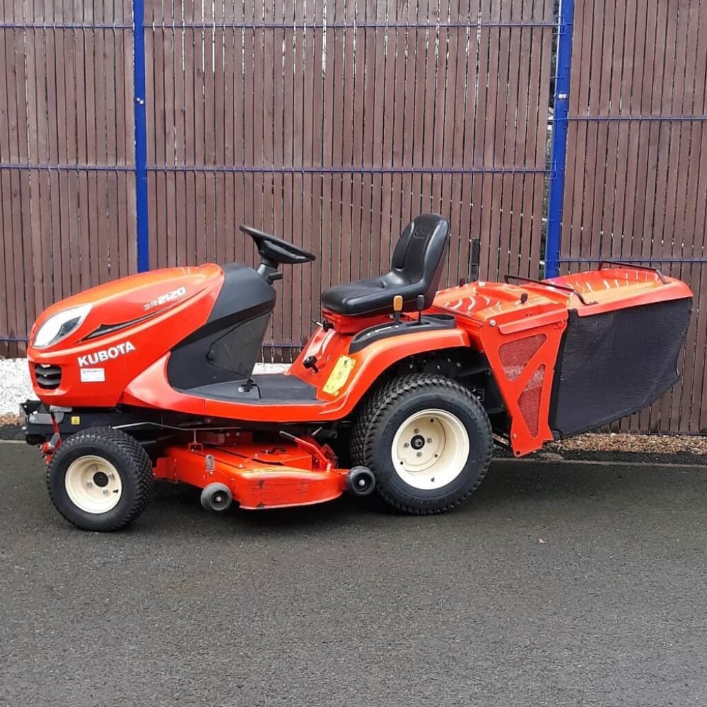 Kubota GR2120 Ride-on Tractor in excellent condition. Four wheel drive. 3 cylinder diesel engine and a 450L grass box. Fully serviced ready for work.