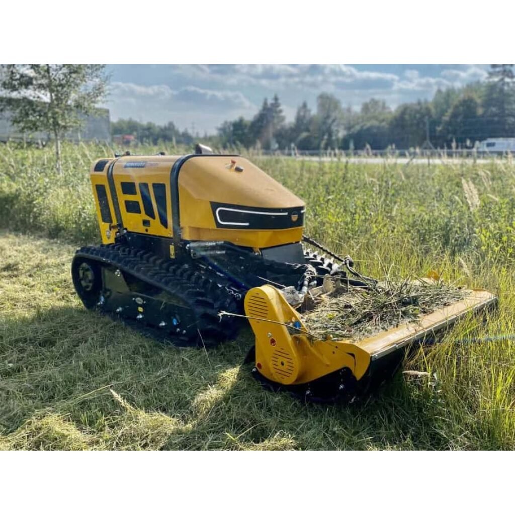 With a working width of 1.3 Meters and a remote control range of over 100m you can operate the machine at a safe distance whilst still being in control.