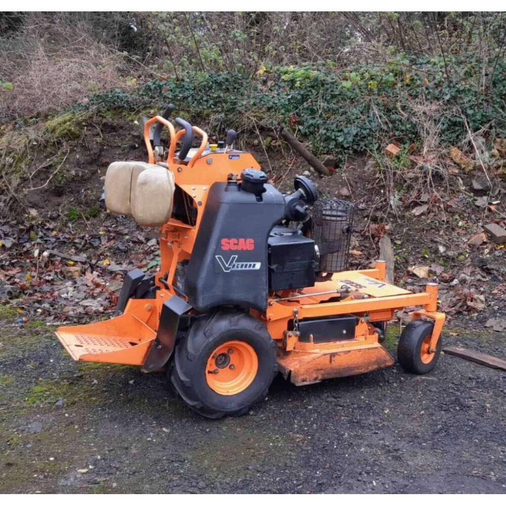 Used Scag V Ride stand-on Mower in good condition and has been fully serviced with sharpened blades and new filters