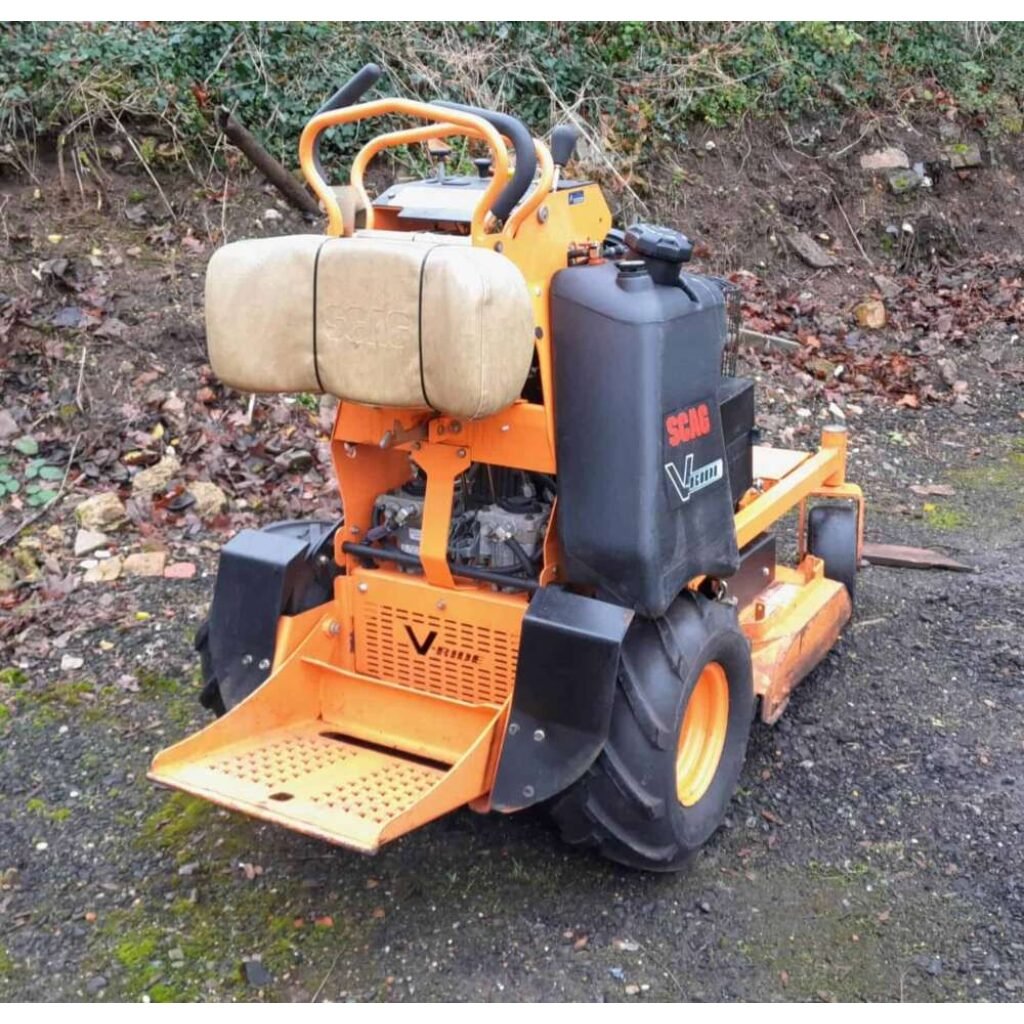 Used Scag V Ride stand-on Mower in good condition and has been fully serviced with sharpened blades and new filters. Extra wheels and tyres included