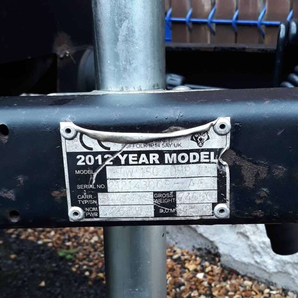 Timberwolf TW150DHB 6” Chipper in very good condition. Starts and runs perfect. Feed rollers work well. New Blades fitted. Engine fully serviced. New air, oil and fuel filters. New hitch lock. New jockey wheel assy. New lighting board. New battery. Excellent sound chipper. Braked version.